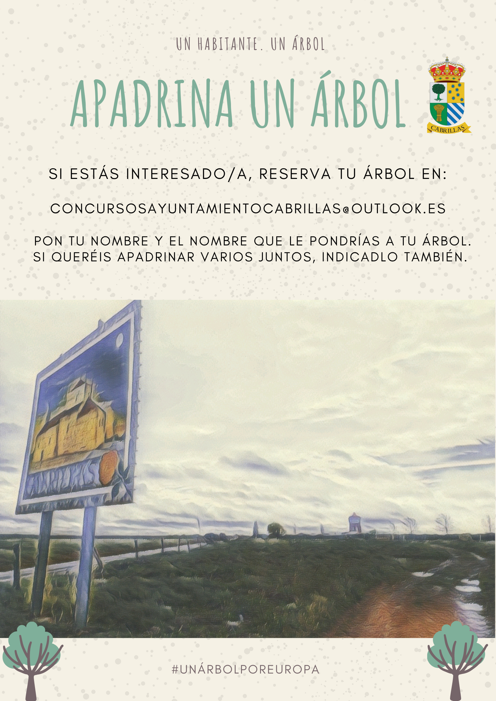 Solo tienes que enviar un correo a concursosayuntamientocabrillas@outlook.es diciendo tu nombre y apellidos y el nombre que le podrías a tu árbol.