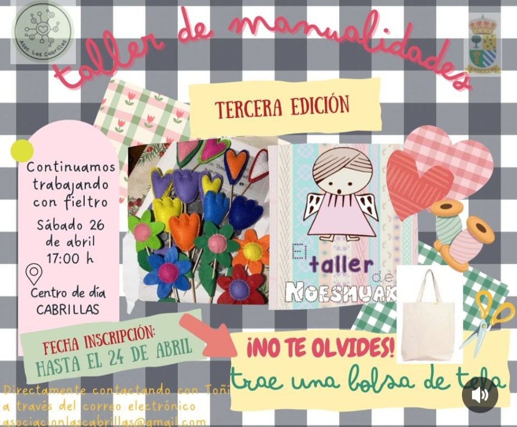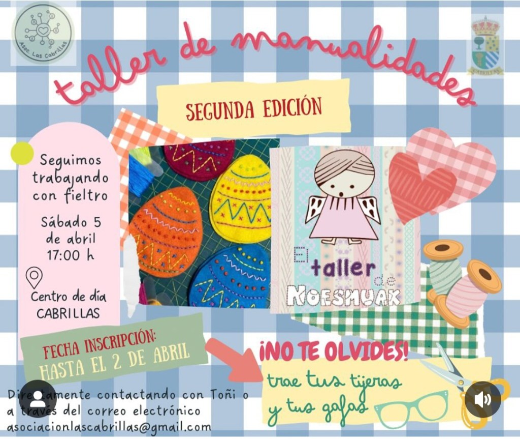 Taller de costura creativa en tres sesiones: 15 de marzo, 5 de abril y 26 de abril. Reserva tu plaza a través del grupo de difusión de la asociación Las Cabrillas.